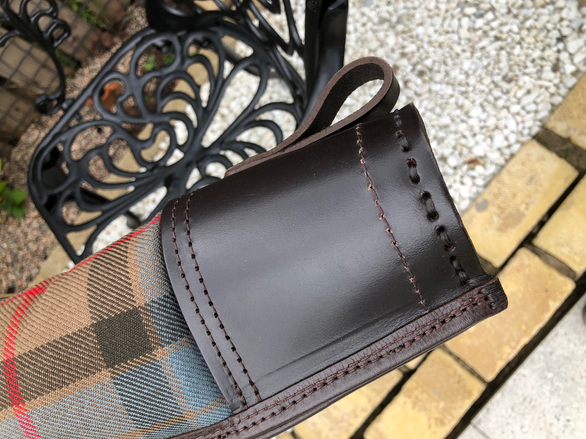 The block end is encased in 3mm Leather, and plug is over 25mm thick to ensure maximum protection for the barrel end, the slip features a leather hanging loop.
